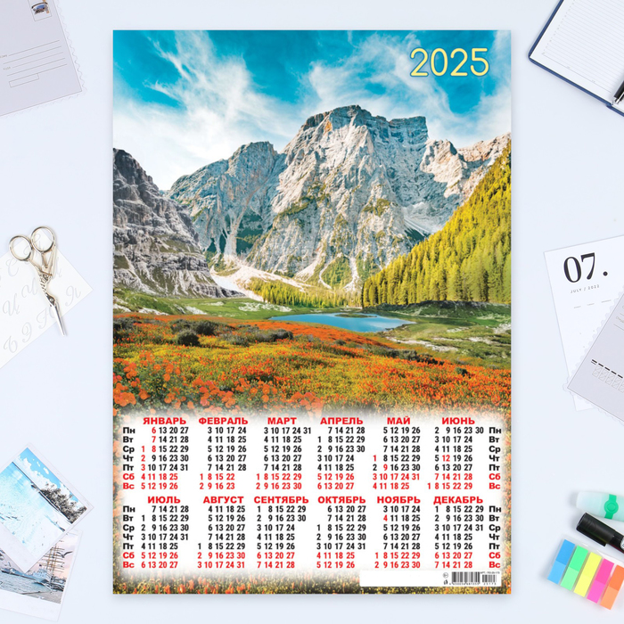 Календарь листовой А2 «Горы» 2025 год, 42×60 см