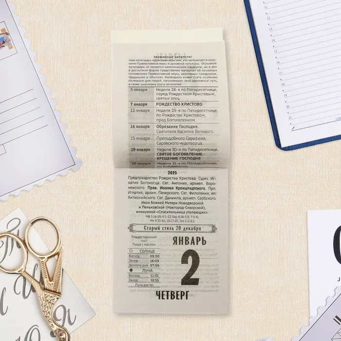 Календарь отрывной "Православный церковный календарь" 2025 год, 7,7 х 11,4 см