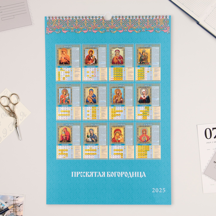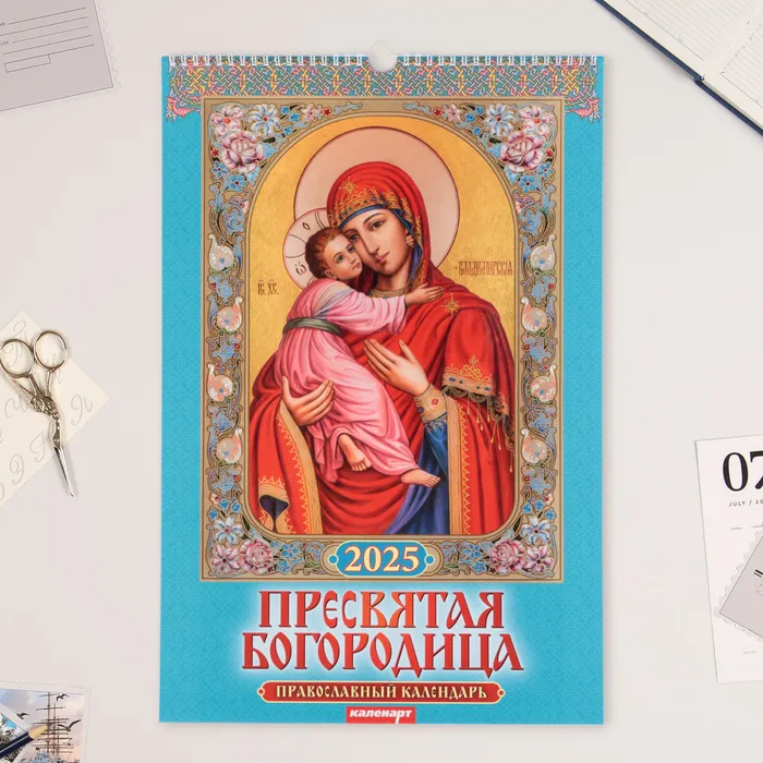 Календарь перекидной на ригеле А3 «Пресвятая Богородица» 2025, 32×48 см