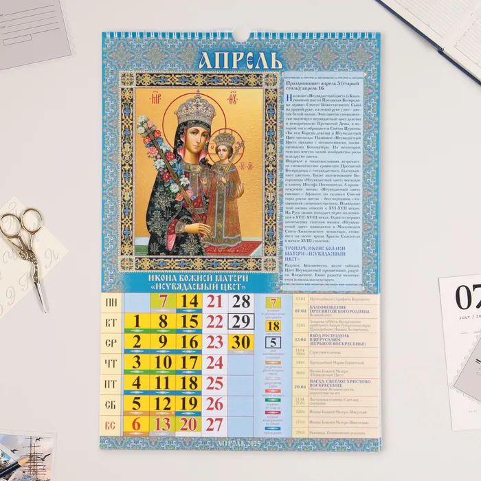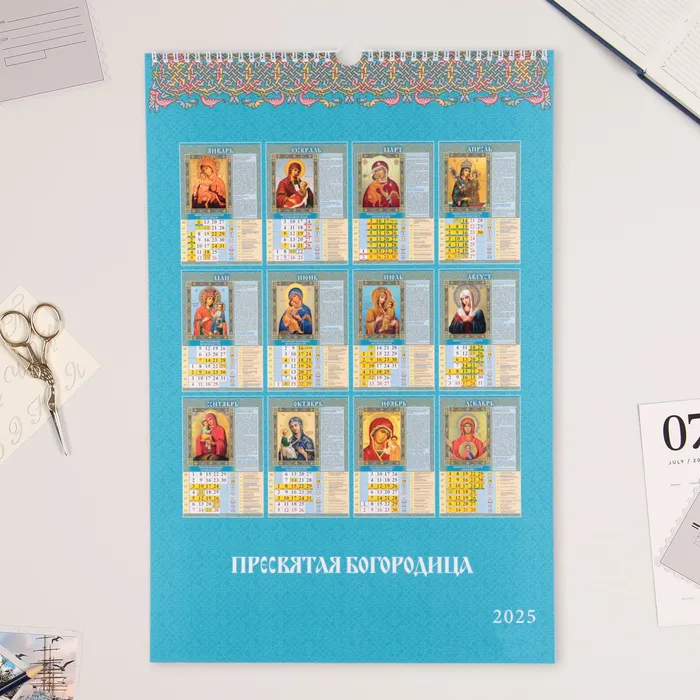 Календарь перекидной на ригеле А3 «Пресвятая Богородица» 2025, 32×48 см — Характеристики