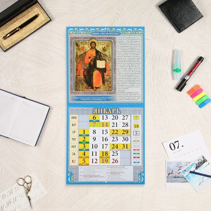 Календарь перекидной на скрепке "Православный календарь" с курсором, 2025 год, 29 х 29 см