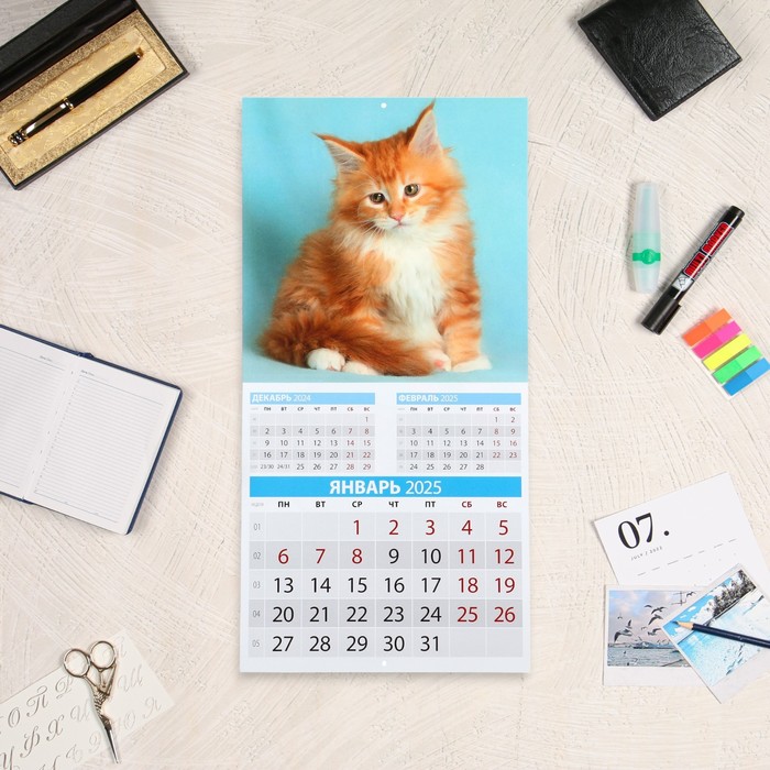 Календарь перекидной на скрепке «Котята» 2025 год, 12 листов, 29×29 см