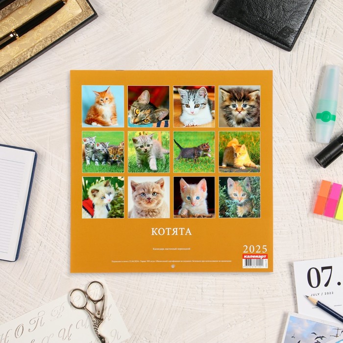 Календарь перекидной на скрепке «Котята» 2025 год, 12 листов, 29×29 см — Характеристики