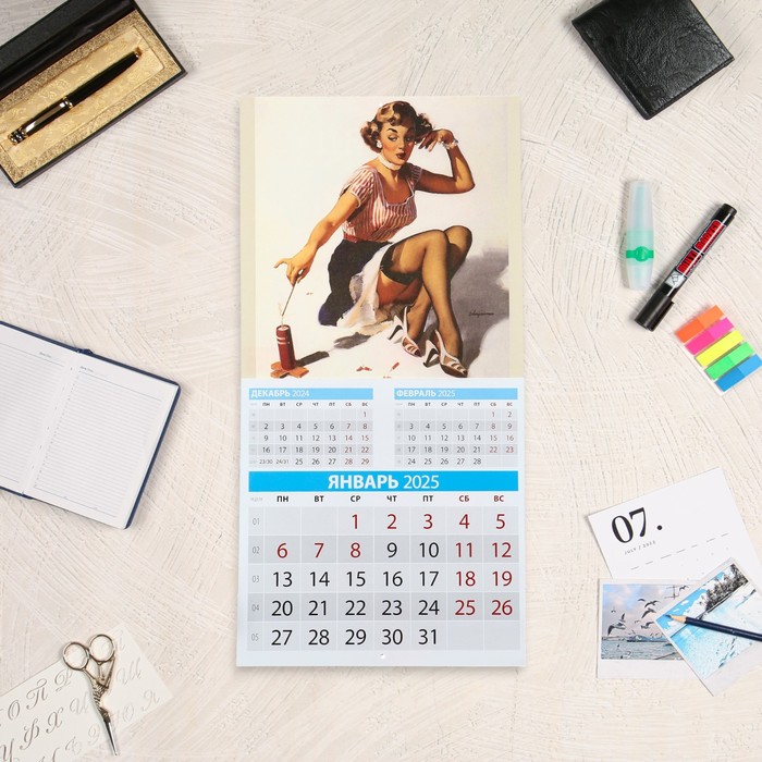 Календарь перекидной на скрепке «ПинАп» 2025 год, 12 листов, 29×29 см