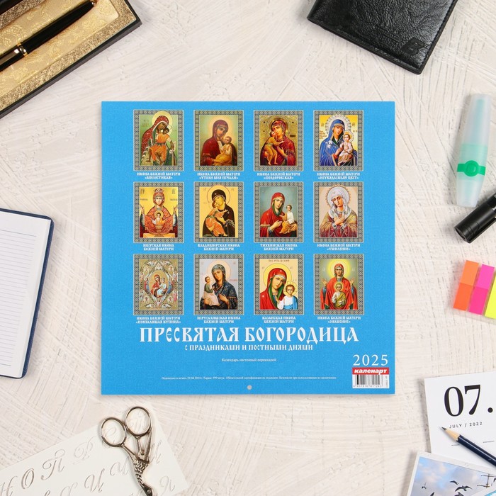 Календарь перекидной на скрепке «Пресвятая Богородица» 2025 год, 12 листов, 29×29 см
