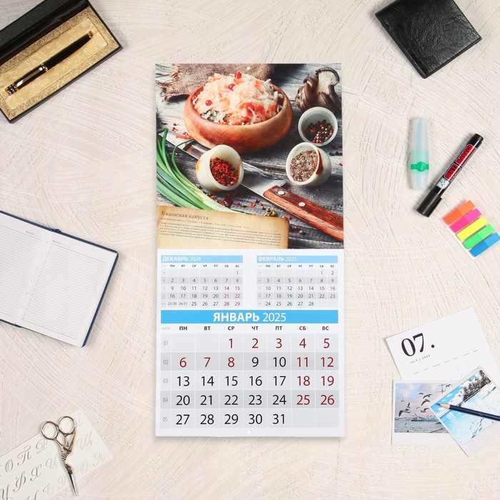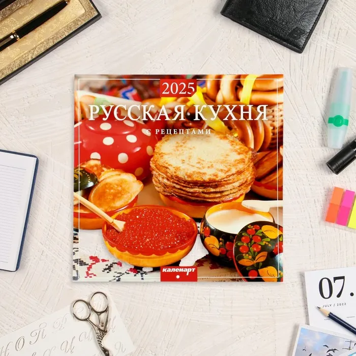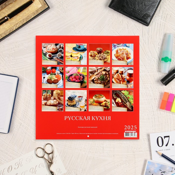 Календарь перекидной на скрепке «Русская кухня с рецептами» 2025 год, 12 листов, 29×29 см