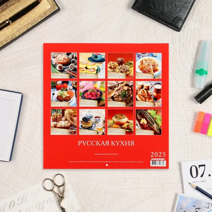 Календарь перекидной на скрепке «Русская кухня с рецептами» 2025 год, 12 листов, 29×29 см — Характеристики
