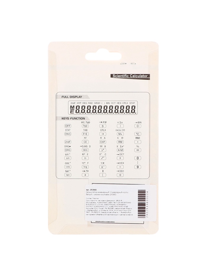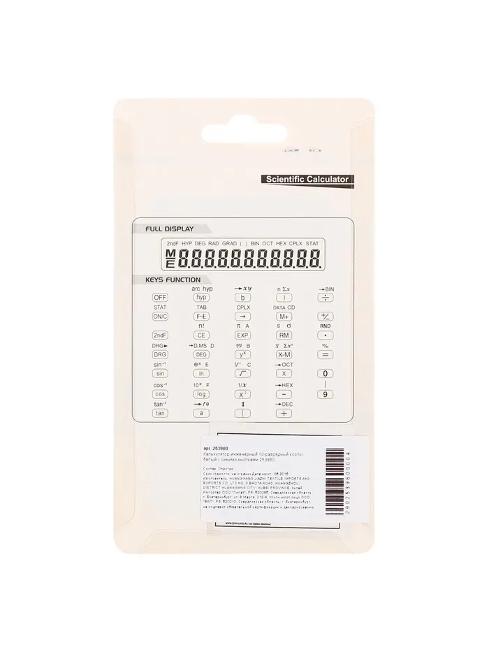 Калькулятор инженерный, 10-разрядный корпус белый, с синими кнопками — Характеристики