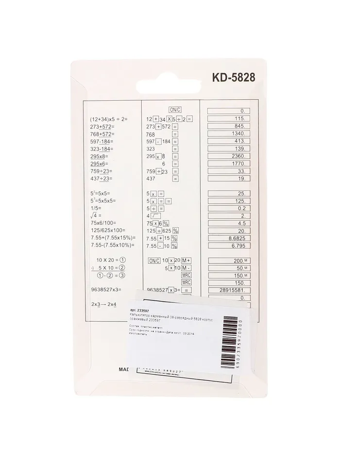 Калькулятор карманный 08-разрядный 5828 корпус оранжевый — Характеристики