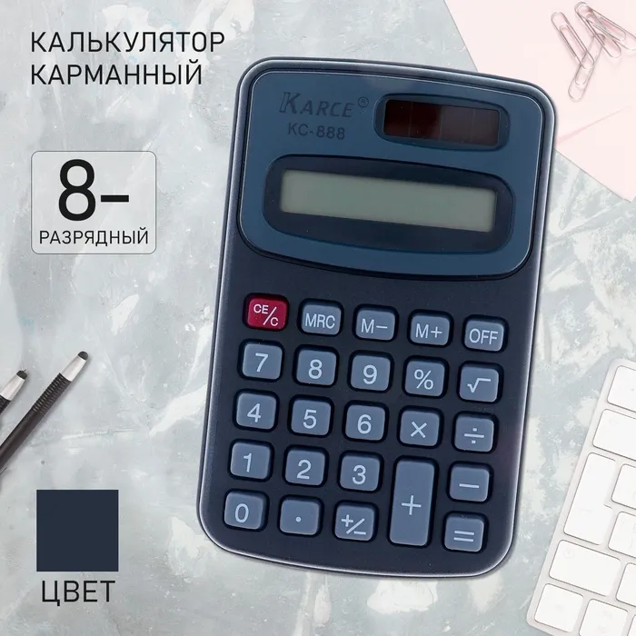 Калькулятор карманный с чехлом 8-разрядный, KC - 888, работает от батарейки (таблетка Ag 10) — Характеристики