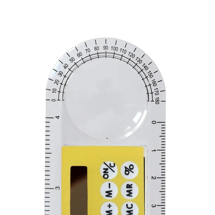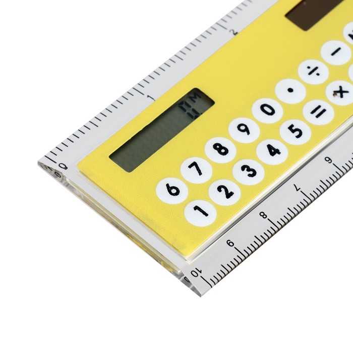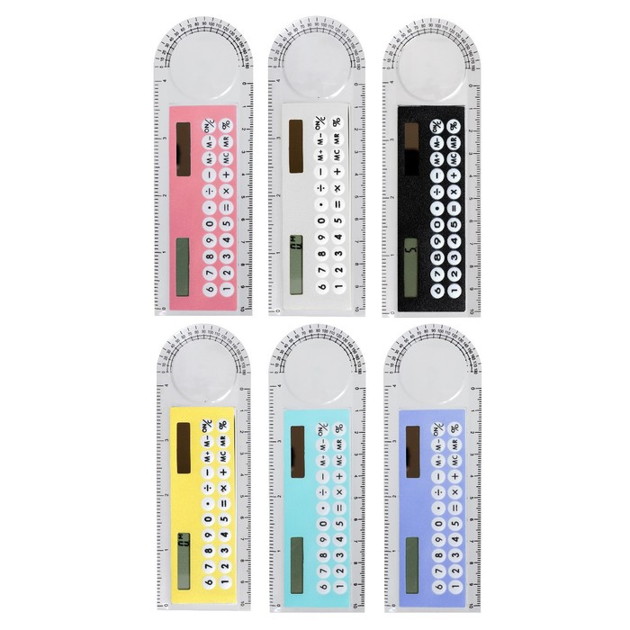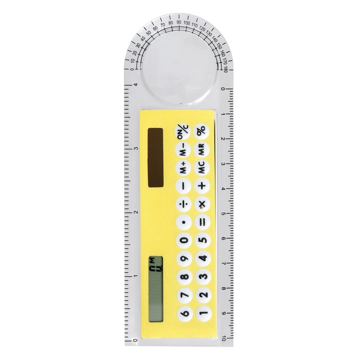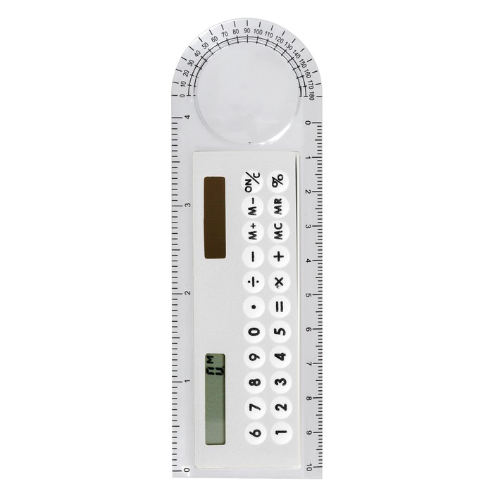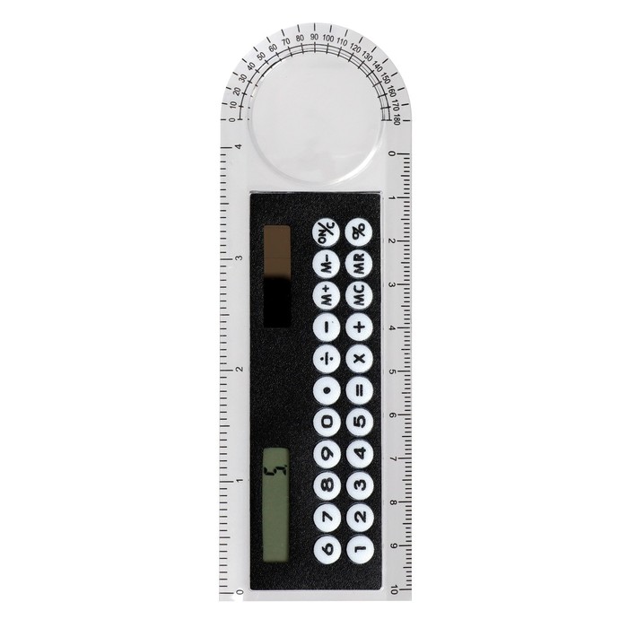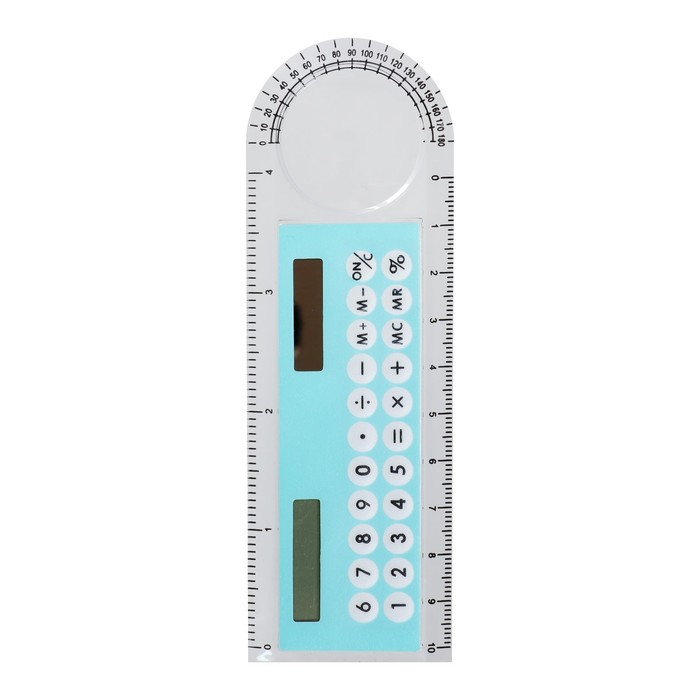 Калькулятор - линейка, 10 см, 8-разрядный, корпус прозрачного цвета, с транспортиром, работает от света, МИКС — Характеристики