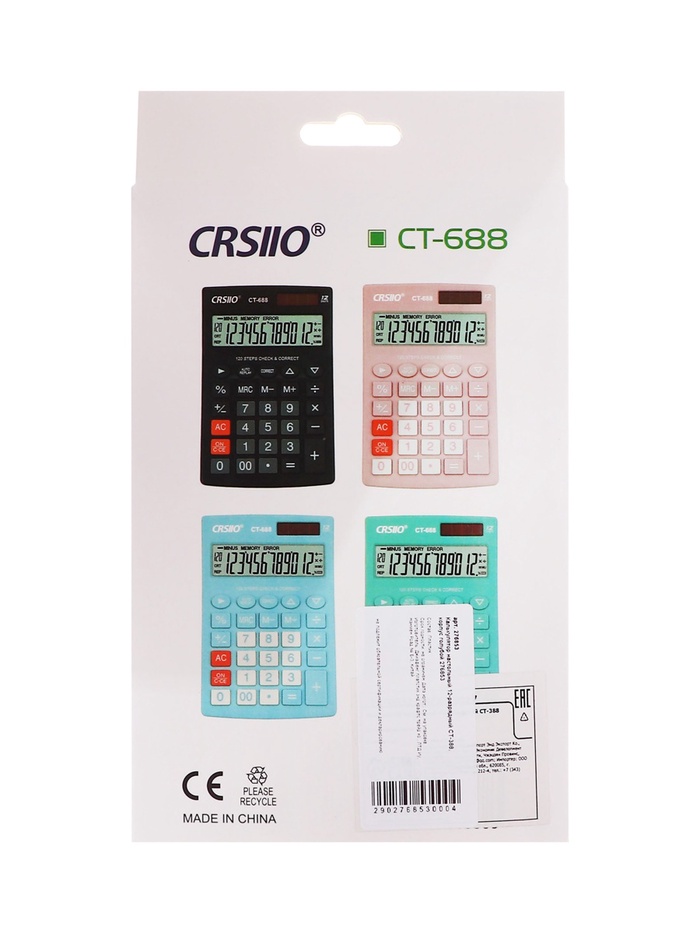 Калькулятор настольный 12-разрядный CT-388, голубой — Характеристики