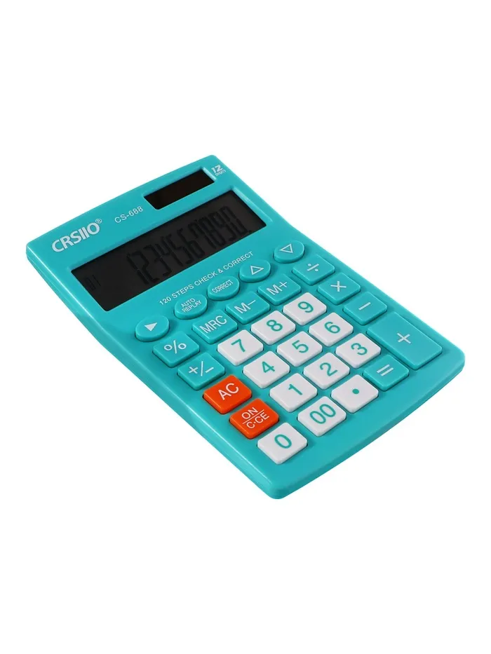Настольный калькулятор в бирюзовом корпусе с 12-разрядным дисплеем - омпактное и экономичное решение для ежедневных расчетов. Функция общего суммирования (GT) делает этот калькулятор универсальным помощником в любых вычислениях. Работает исключительно от батарейки-таблетки, что удобно и не требует дополнительных проводов.