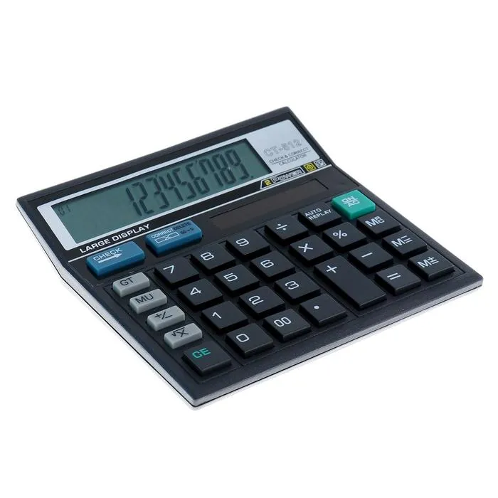 Настольный калькулятор производит все основные математические действия, расчеты с процентами, вычисления с памятью.