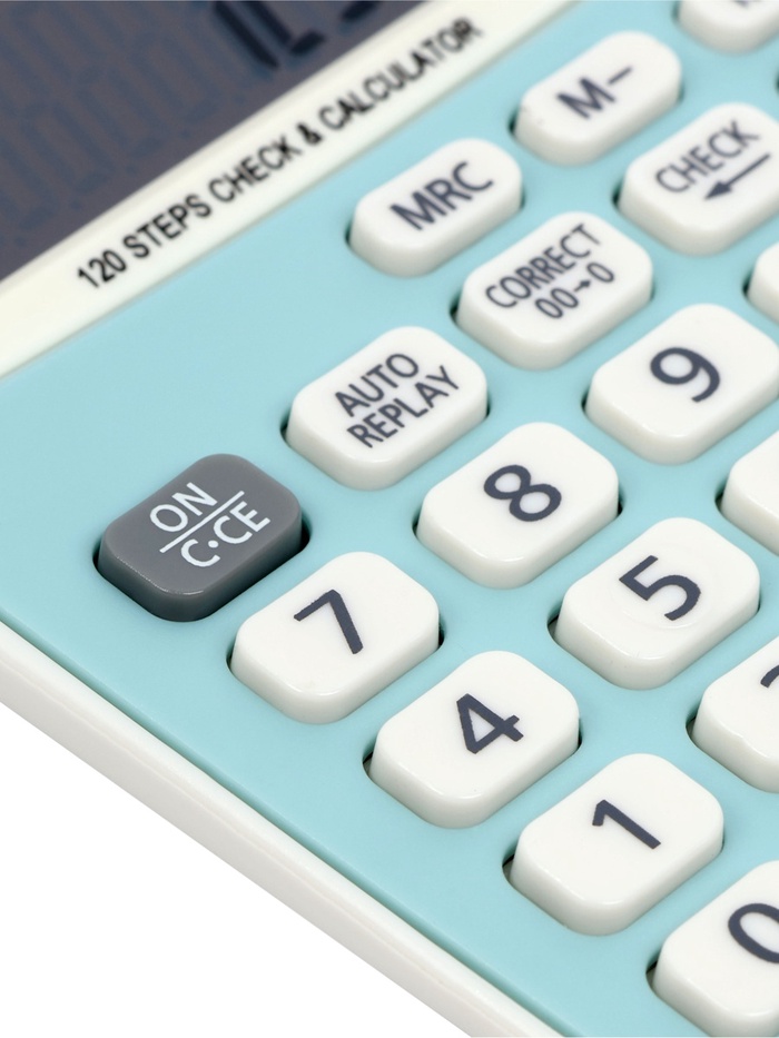 Голубой настольный калькулятор на 12 разрядов - идеальное решение для офиса и дома. Компактность и элегантный дизайн делают его удобным помощником в любых рабочих и учебных ситуациях.