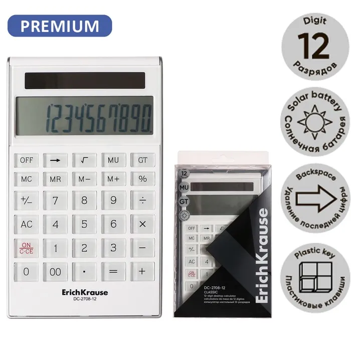 Калькулятор настольный 12-разрядов ErichKrause DC-2708-12 Classic, белый — Характеристики