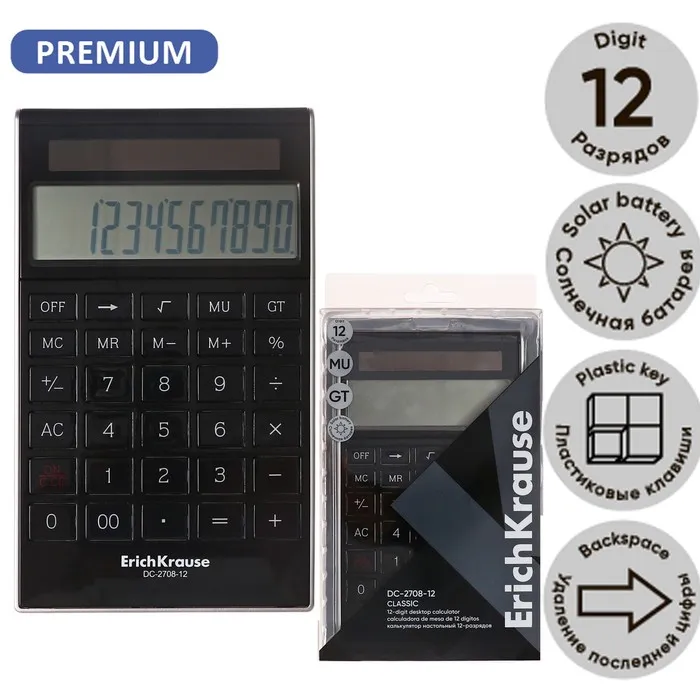 Калькулятор настольный 12-разрядов ErichKrause DC-2708-12 Classic, черный — Характеристики