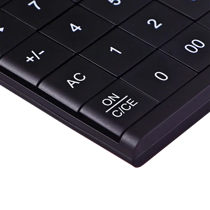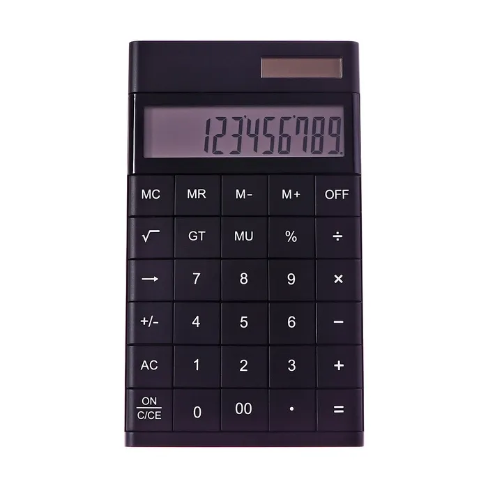 Наш настольный калькулятор с 12-разрядным дисплеем — это идеальный помощник в офисе или дома, который отличается экологичностью и надежностью. Насыщенный чёрный цвет и компактный дизайн делают его универсальным инструментом для работы с расчетами и финансовыми операциями.