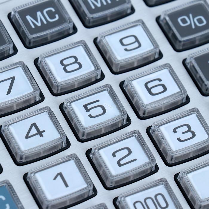 Настольный калькулятор производит все основные математические действия, расчеты с процентами, вычисления с памятью.