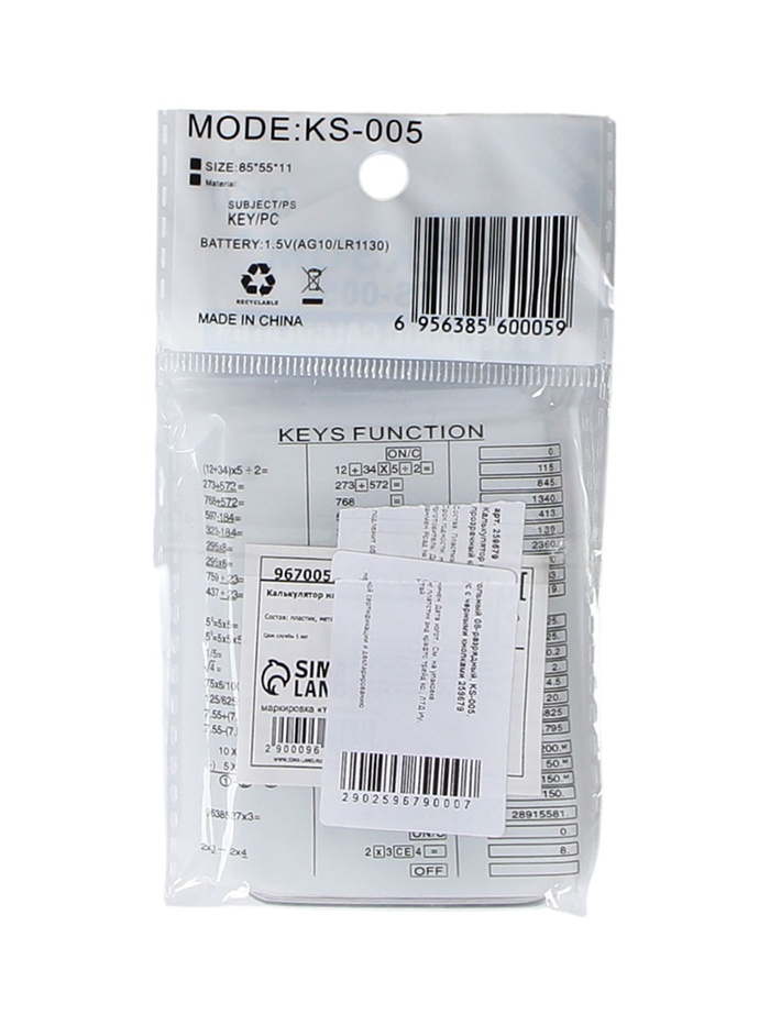 Калькулятор настольный 8-разрядный, KS-005, прозрачный корпус, чёрные кнопки — Характеристики