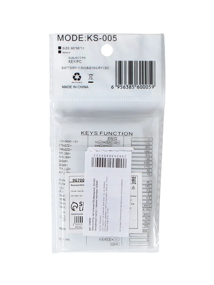 Калькулятор настольный 8-разрядный, KS-005, прозрачный корпус, серые кнопки — Характеристики