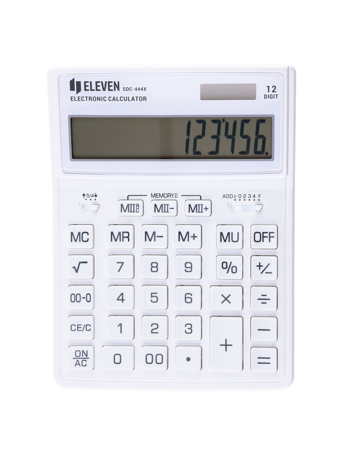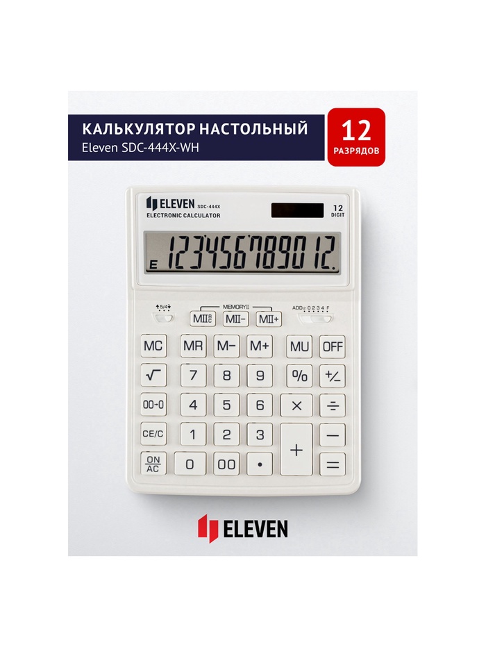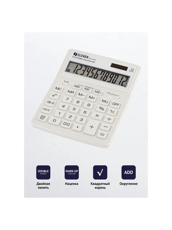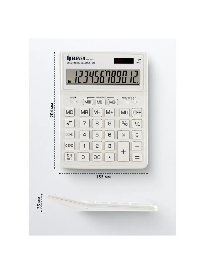 Калькулятор настольный Eleven SDC-444X-WH, 12 разрядов, двойное питание, 155×204×33 мм, белый — Характеристики