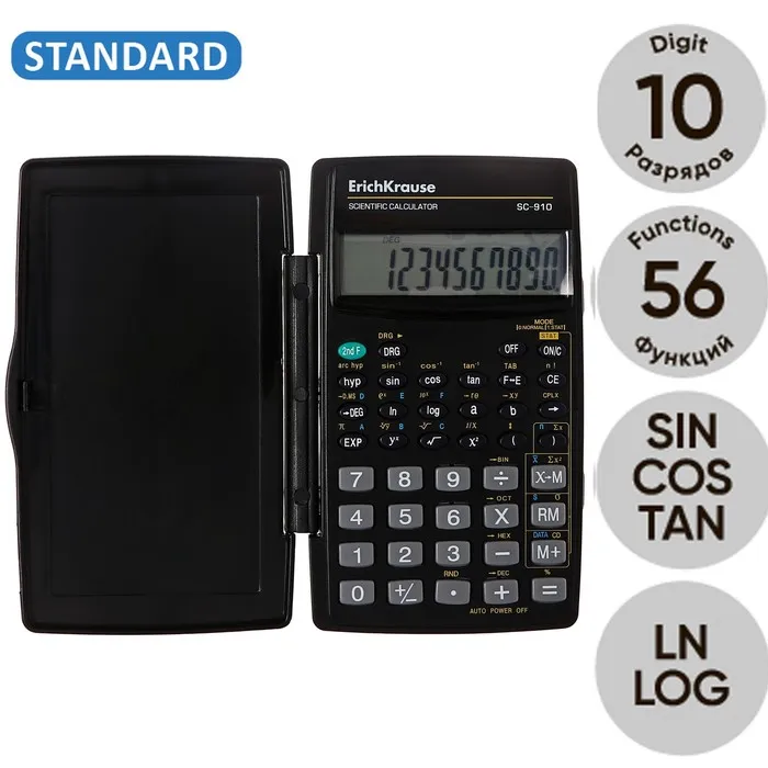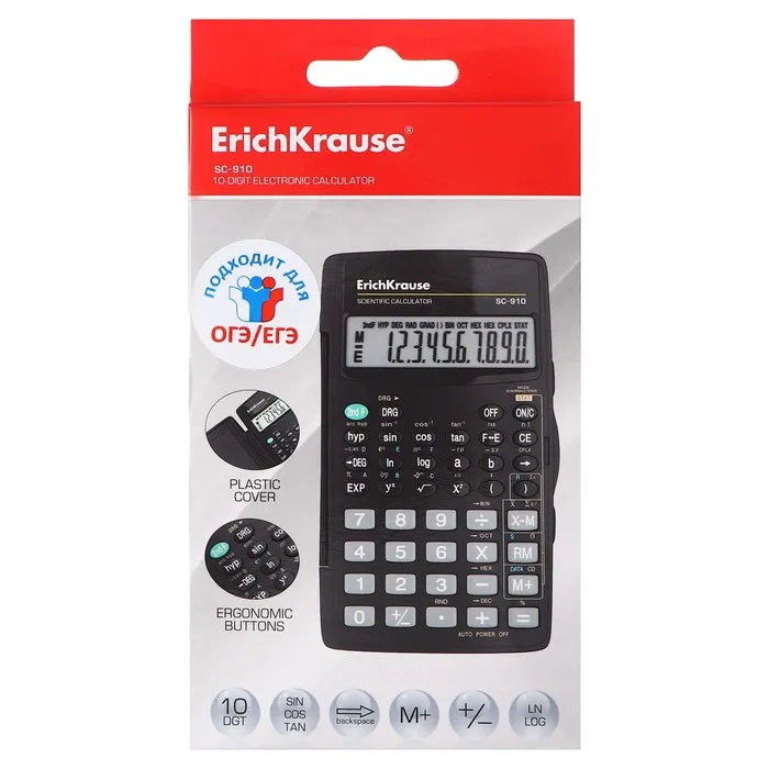 Калькулятор научный 10 разрядов ErichKrause SC-910, чёрный, рекомендован для ОГЭ и ЕГЭ — Характеристики