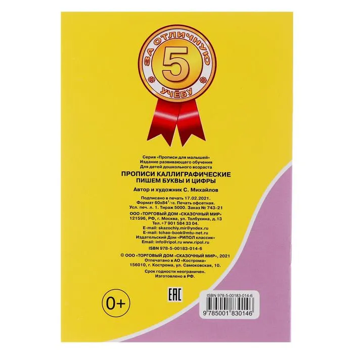 Каллиграфические прописи для малышей «Пишем буквы и цифры» — Характеристики