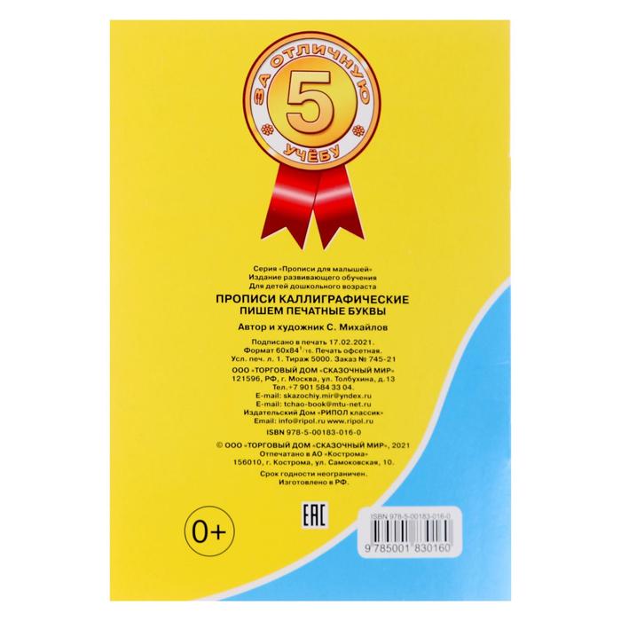 Каллиграфические прописи для малышей «Пишем печатные буквы» — Характеристики