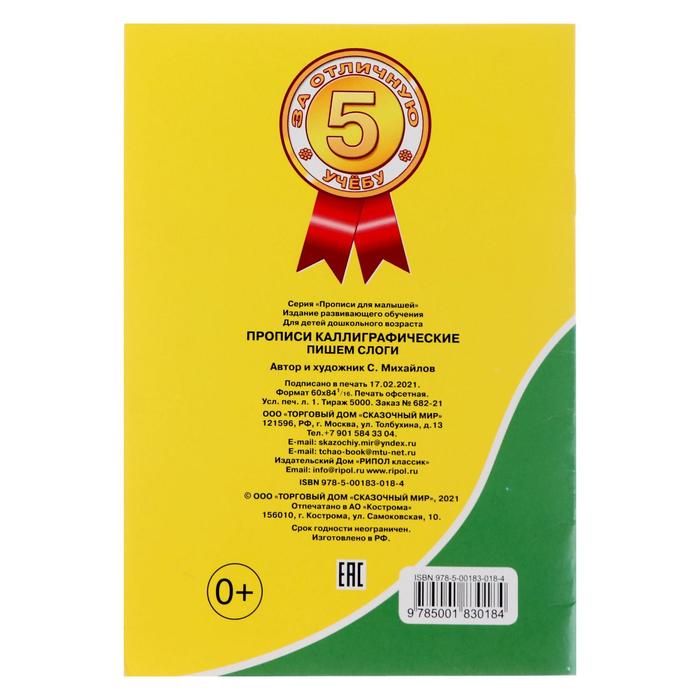 Каллиграфические прописи для малышей «Пишем слоги» — Характеристики