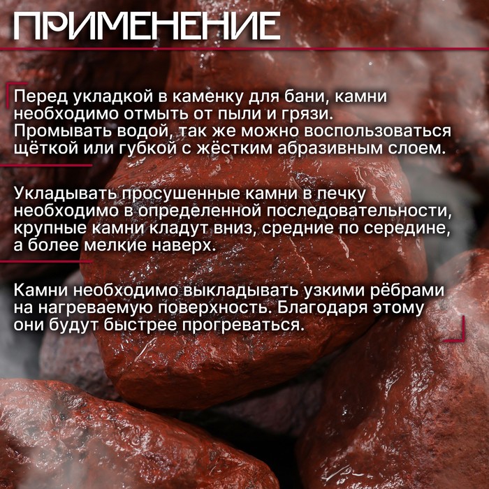 Камень для бани "Яшма" сургучная галтованная 10 кг, фракция 70-120 мм — Характеристики