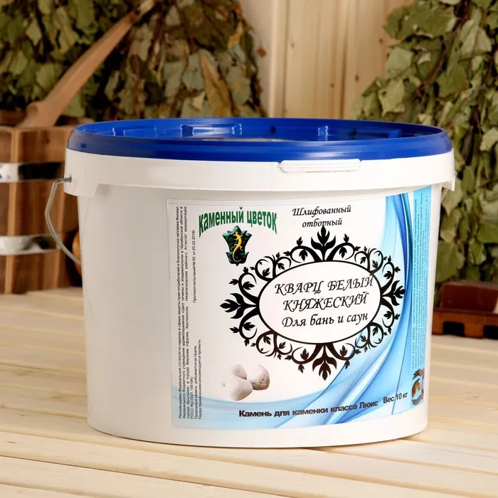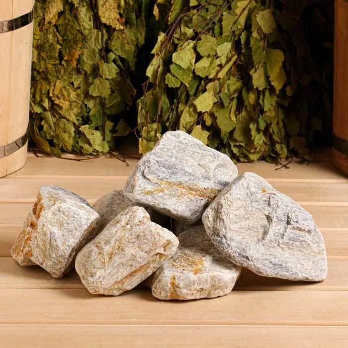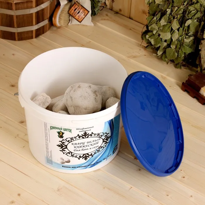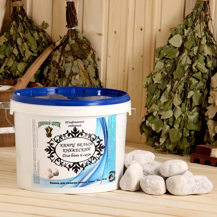 Выбирайте для бани и сауны только специальные камни, которые не трескаются от перепадов температуры и не выделяют вредные вещества. Одной из таких пород является кварц. Минерал при резком охлаждении водой наполняет парилку озоном, который насыщает кровь кислородом, улучшает самочувствие и стимулирует работу мозга. Также при перепаде температуры кварц генерирует электромагнитные колебания, которые восстанавливают энергетическую систему человека.