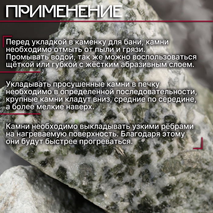 Камень для бани "Жадеит" колотый 10 кг, фракция 70-120 мм — Характеристики