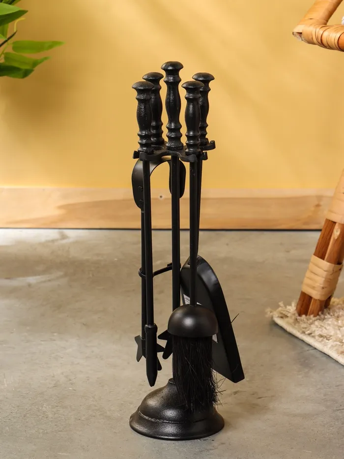 Каминный набор, металлический, 4 предмета: совок, кочерга, щётка, стойка