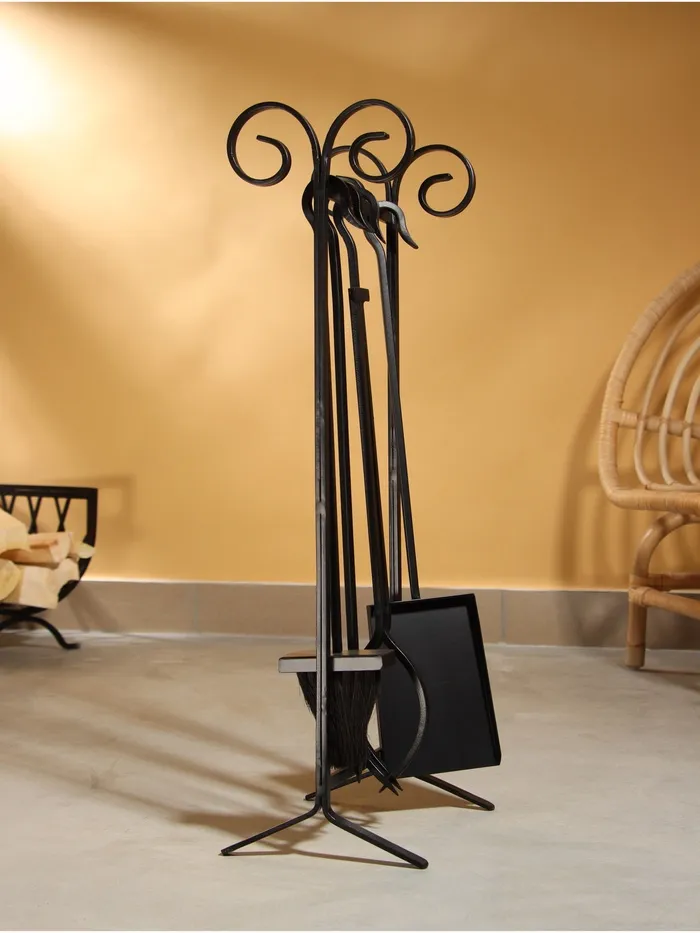Каминный набор КН 0-3Д с дровницей 3 предмета (щетка, совок, кочерга) черный