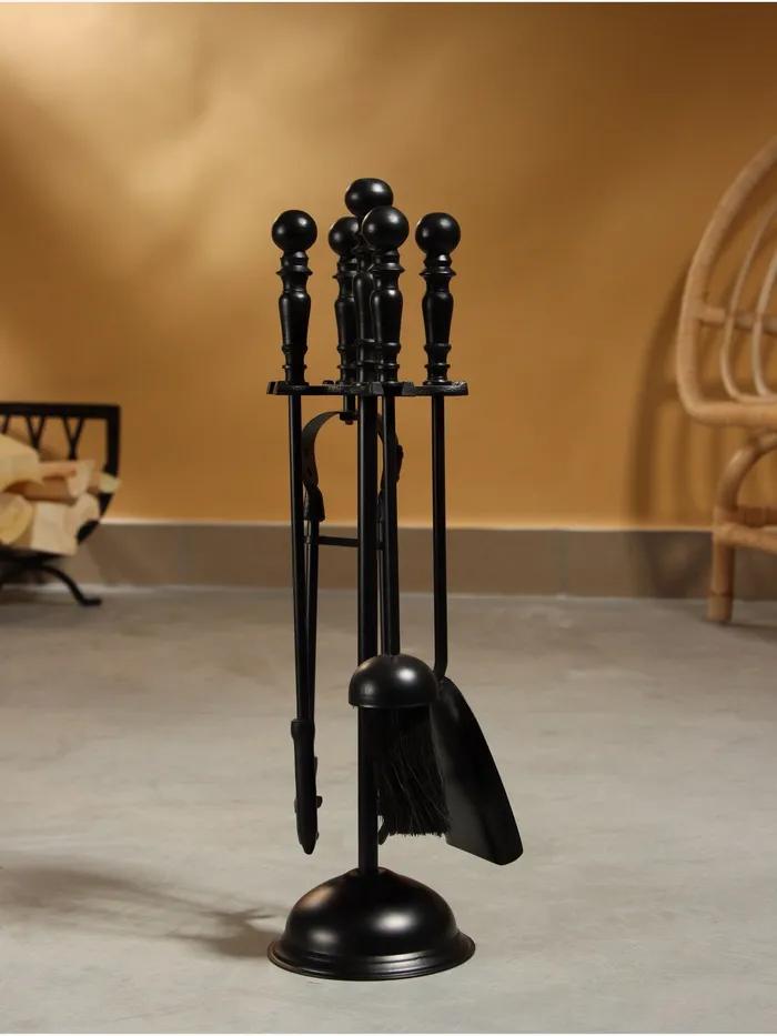 Каминный набор КН-0-1 на стойке 3 предмета (щетка, кочерга, совок) черный