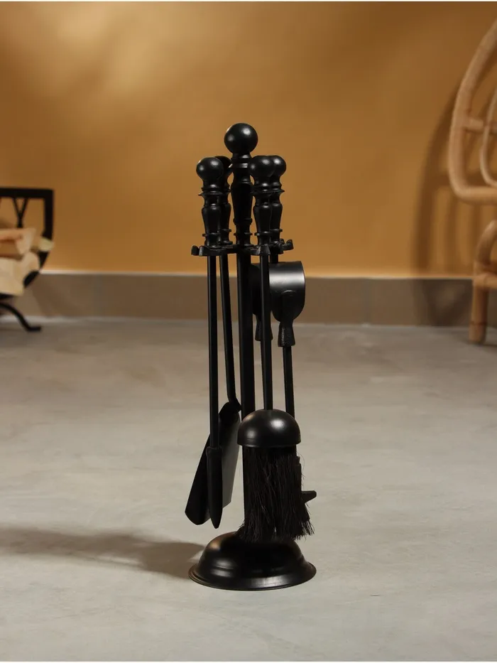 Каминный набор КН-0-1 на стойке 3 предмета (щетка, кочерга, совок) черный