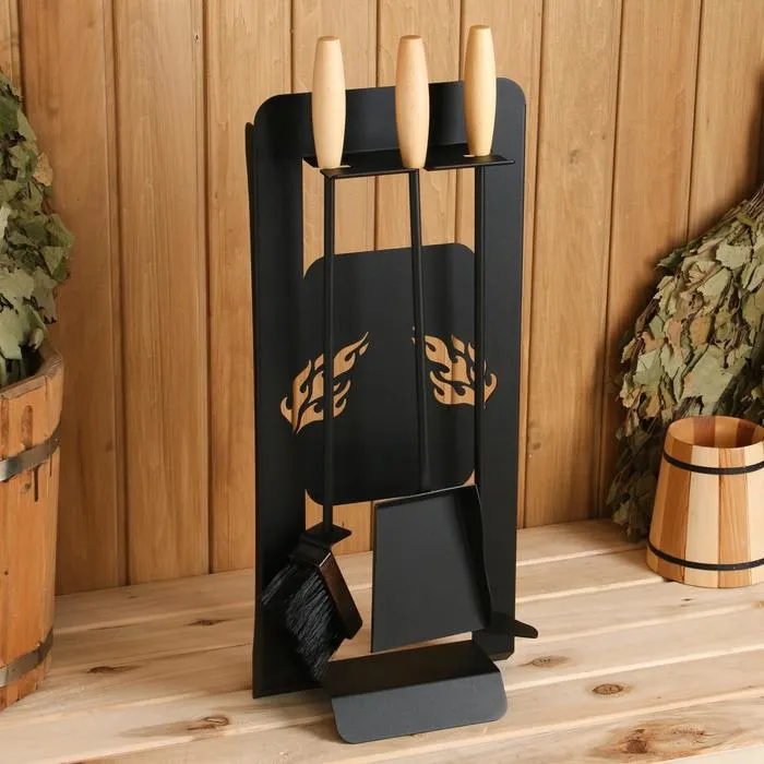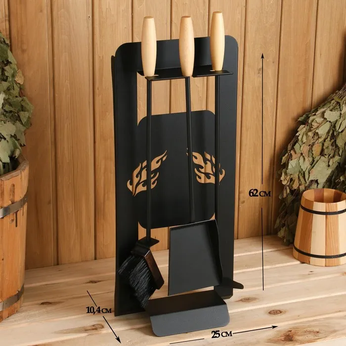 Каминный набор КН-0-1 на стойке 3 предмета (щетка, кочерга, совок) черный — Характеристики