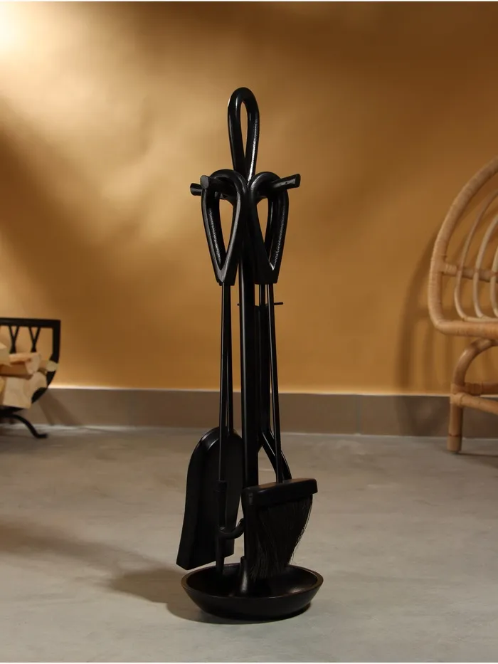 Каминный набор КН 0-3Д с дровницей 3 предмета (щетка, совок, кочерга) черный