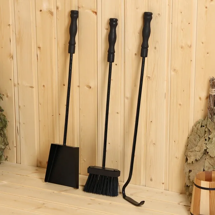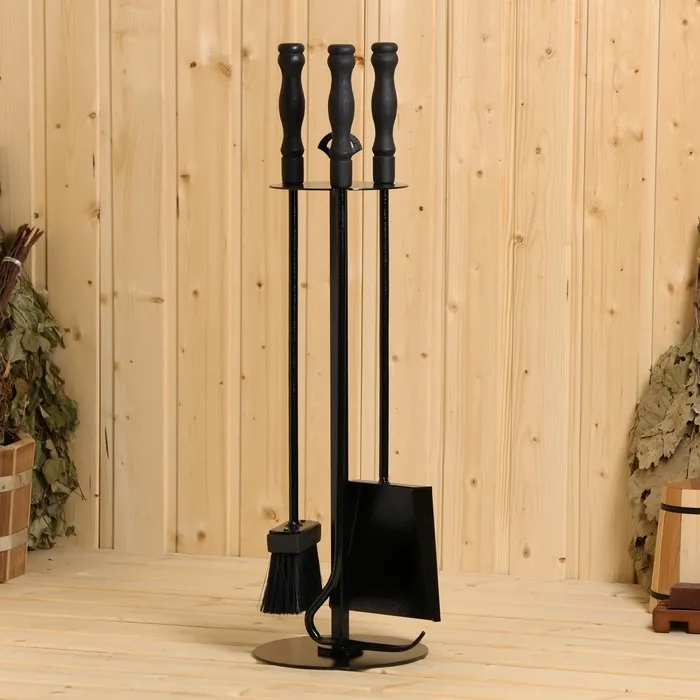 Набор совок для золы и кочерга с деревянной ручкой