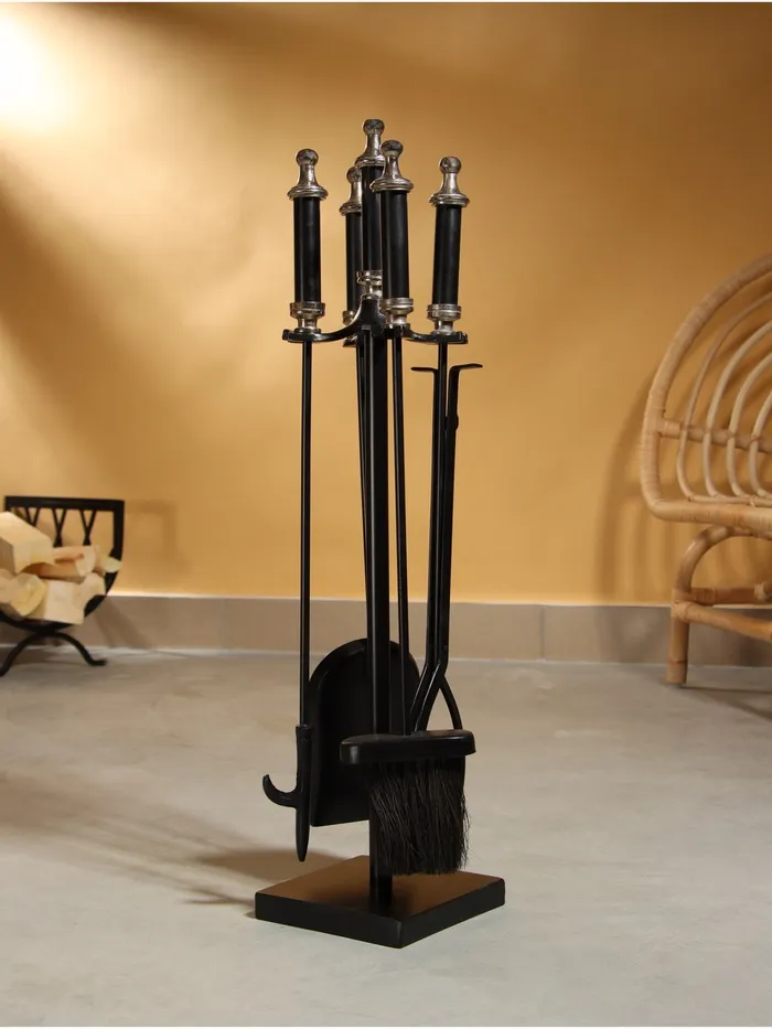 Каминный набор КН 0-3Д с дровницей 3 предмета (щетка, совок, кочерга) черный