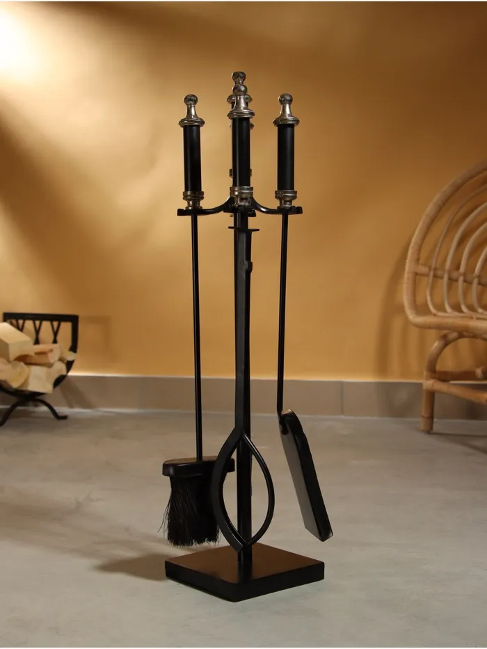 Каминный набор КН-0-1 на стойке 3 предмета (щетка, кочерга, совок) черный