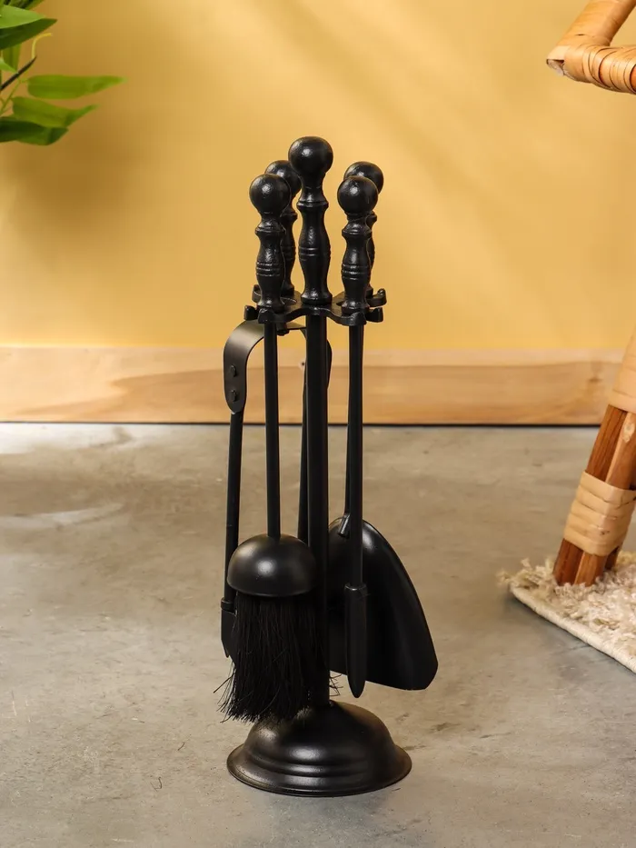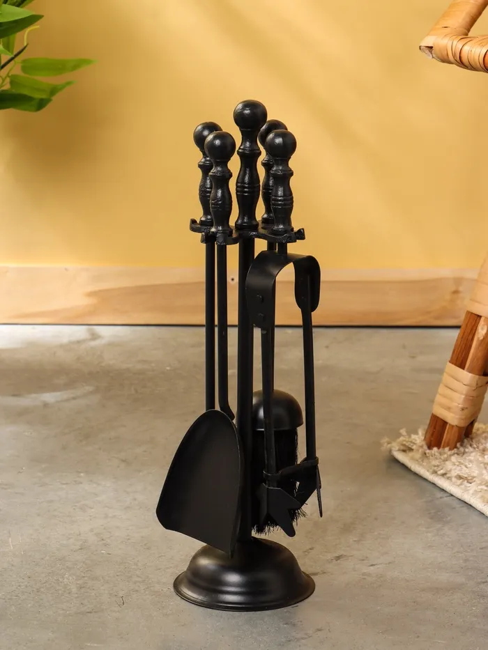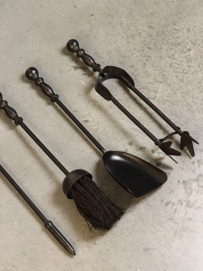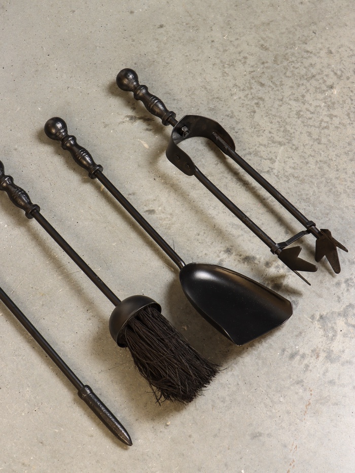 Каминный набор, металлический, 4 предмета: совок, кочерга, щётка, стойка