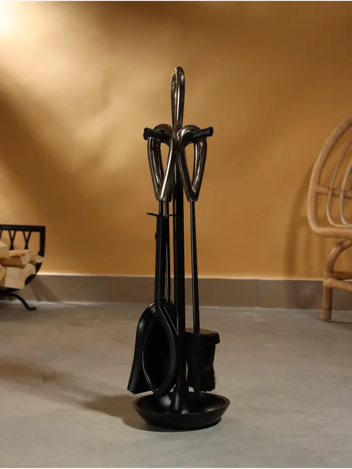 Каминный набор КН 0-3Д с дровницей 3 предмета (щетка, совок, кочерга) черный