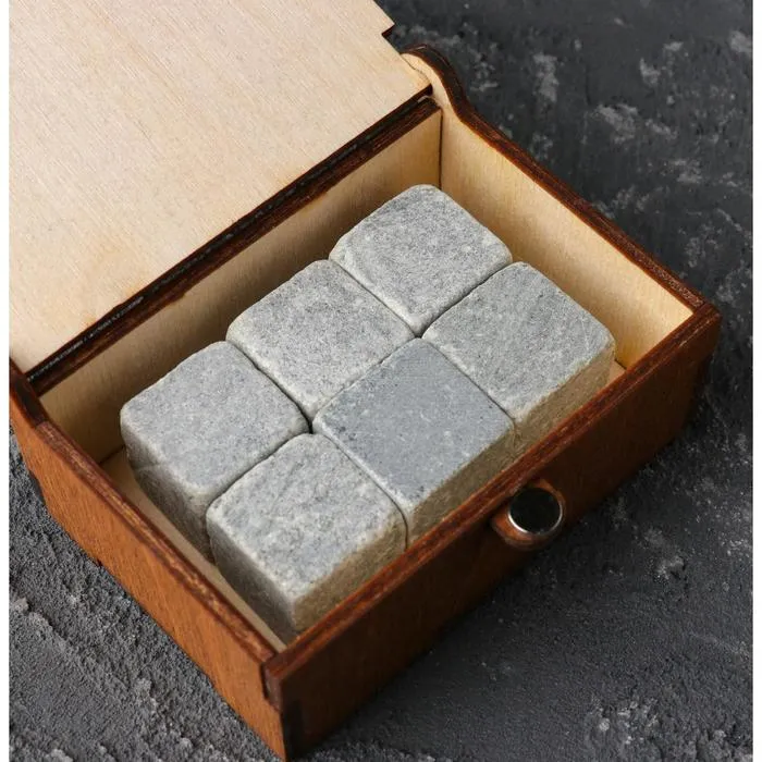 Камни для виски «Крепкий», в шкатулке с магнитом, натуральный стеатит, 6 шт.