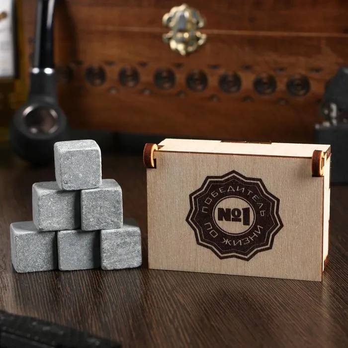 Камни для виски "Победитель по жизни", в шкатулке, натуральный стеатит, 6 шт