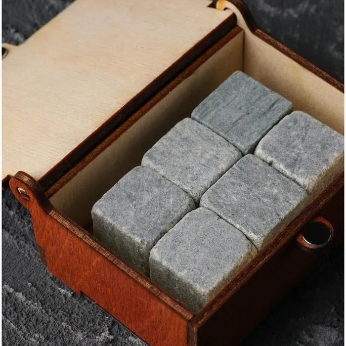 Камни для виски «Медведь», в шкатулке с магнитом, натуральный стеатит, 6 шт.