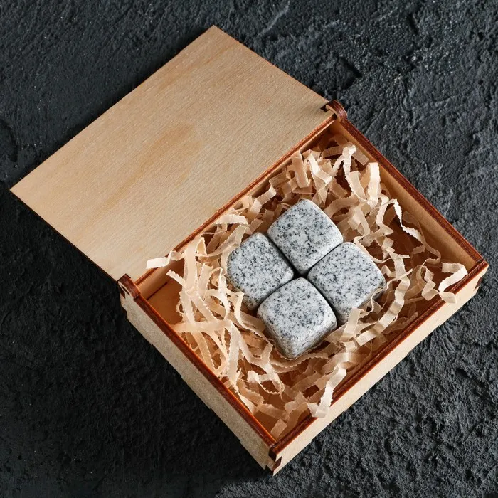 Камни для виски в деревянной шкатулке «Выпьем за счастливый год», набор 4 шт.