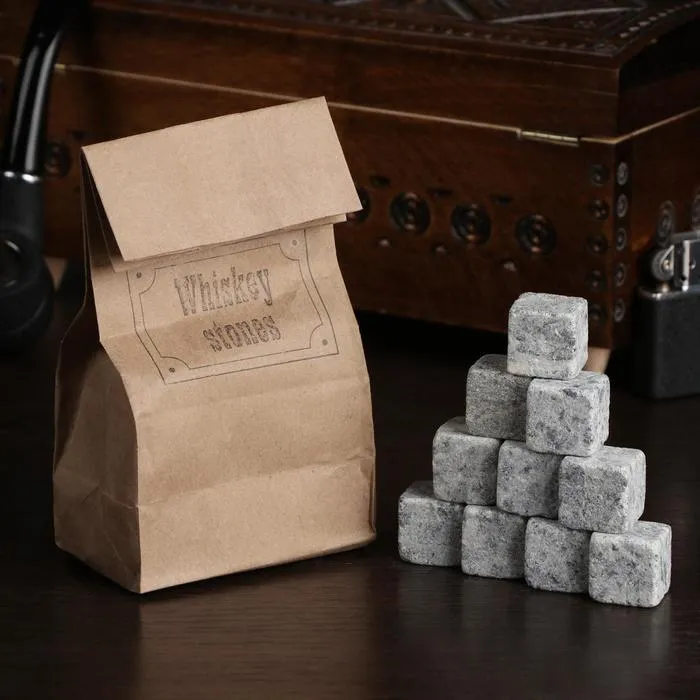 Камни для виски Whiskey stones, в крафт пакете, натуральный стеатит, 20 шт.