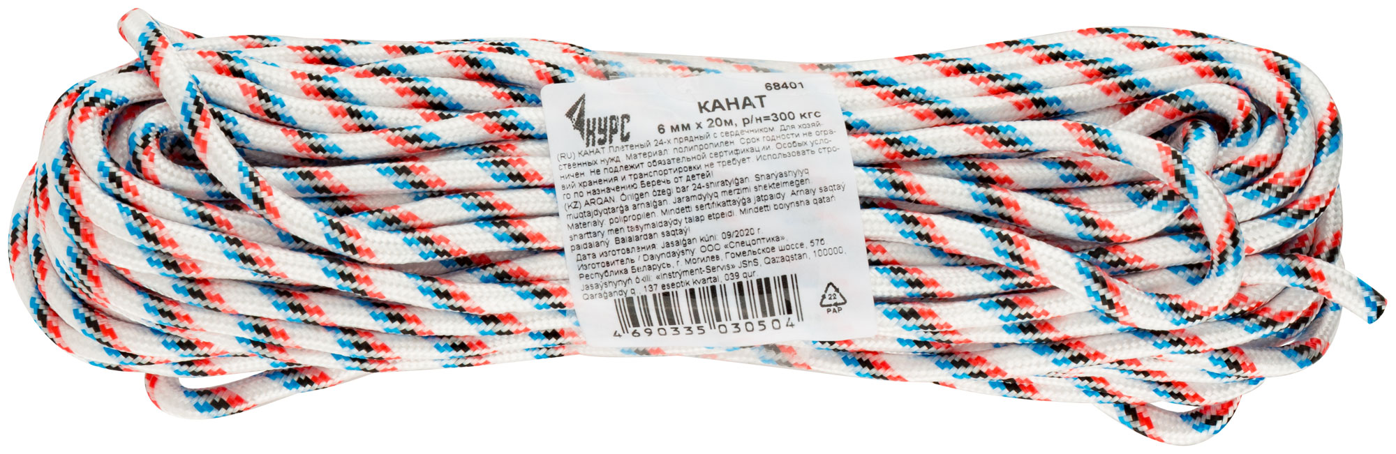 Канат полипропиленовый 24-х прядный с сердечником, диаметром 6 мм и длиной 20 м, станет надежным помощником для профессионалов на строительных площадках и в хозяйственных работах. Он идеально подходит для крепления и транспортировки грузов, где требуется прочность и устойчивость к нагрузкам.